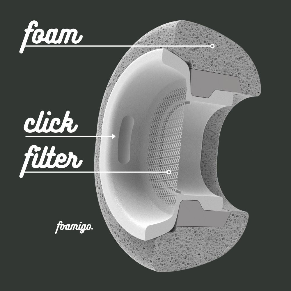 1. Haal de foamigo foam ear tips uit het zakje. En wacht even tot ze zijn uitgezet. Soms zijn ze namelijk nog wat samengeknepen door het zakje waar ze in zitten.